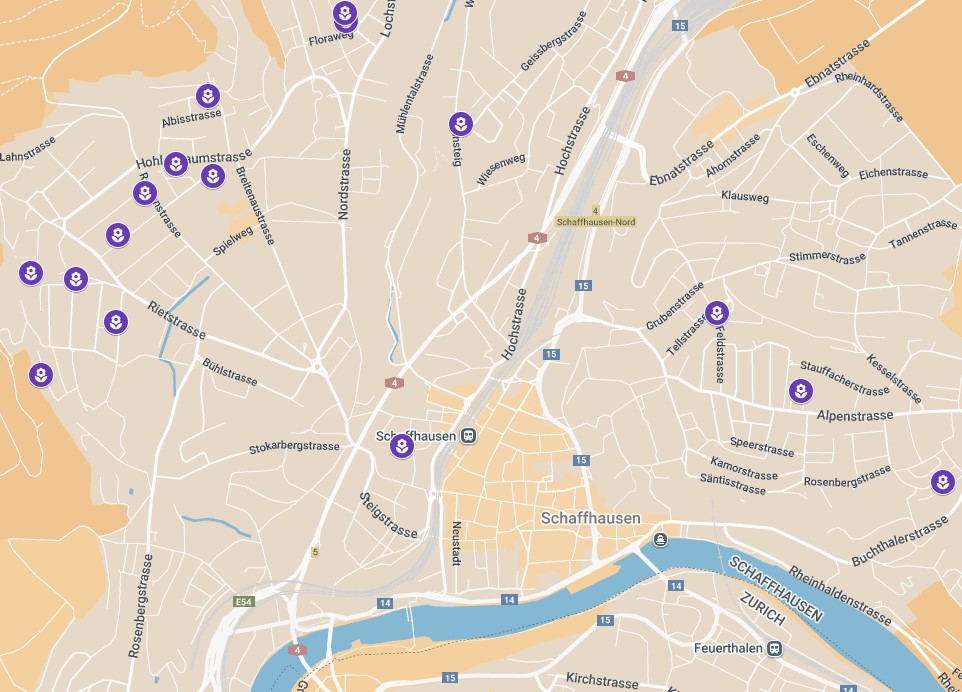 Karte Schaffhausen, hier haben Beratungen stattgefunden